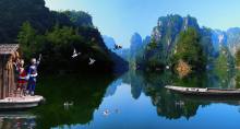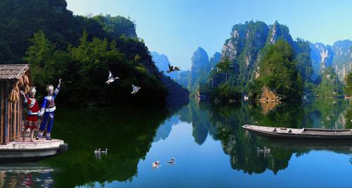 上午:游覽如仙境一般的“人間瑤池”——【寶峰湖景區(qū)】(含門票+景區(qū)環(huán)保車+游船),寶峰湖長2.5公里,位于索溪鎮(zhèn)正南2公里。以其秀麗的湖光水色與幽野的洞天情趣成為武陵源水景風(fēng)光的代表之作,電視劇《西游記》中花果山水簾洞外景就拍攝于“奇峰飛瀑”。清澈無比的湖泊倒映群山,水因山而綠,山得水更青。寶峰湖已開發(fā)的景點以高峽平湖、鷹窩古寨、絕壁飛瀑、一線天峽谷等最為叫絕。蕩舟湖上,登玲瓏翠綠的湖心島,恍若置身畫中。
