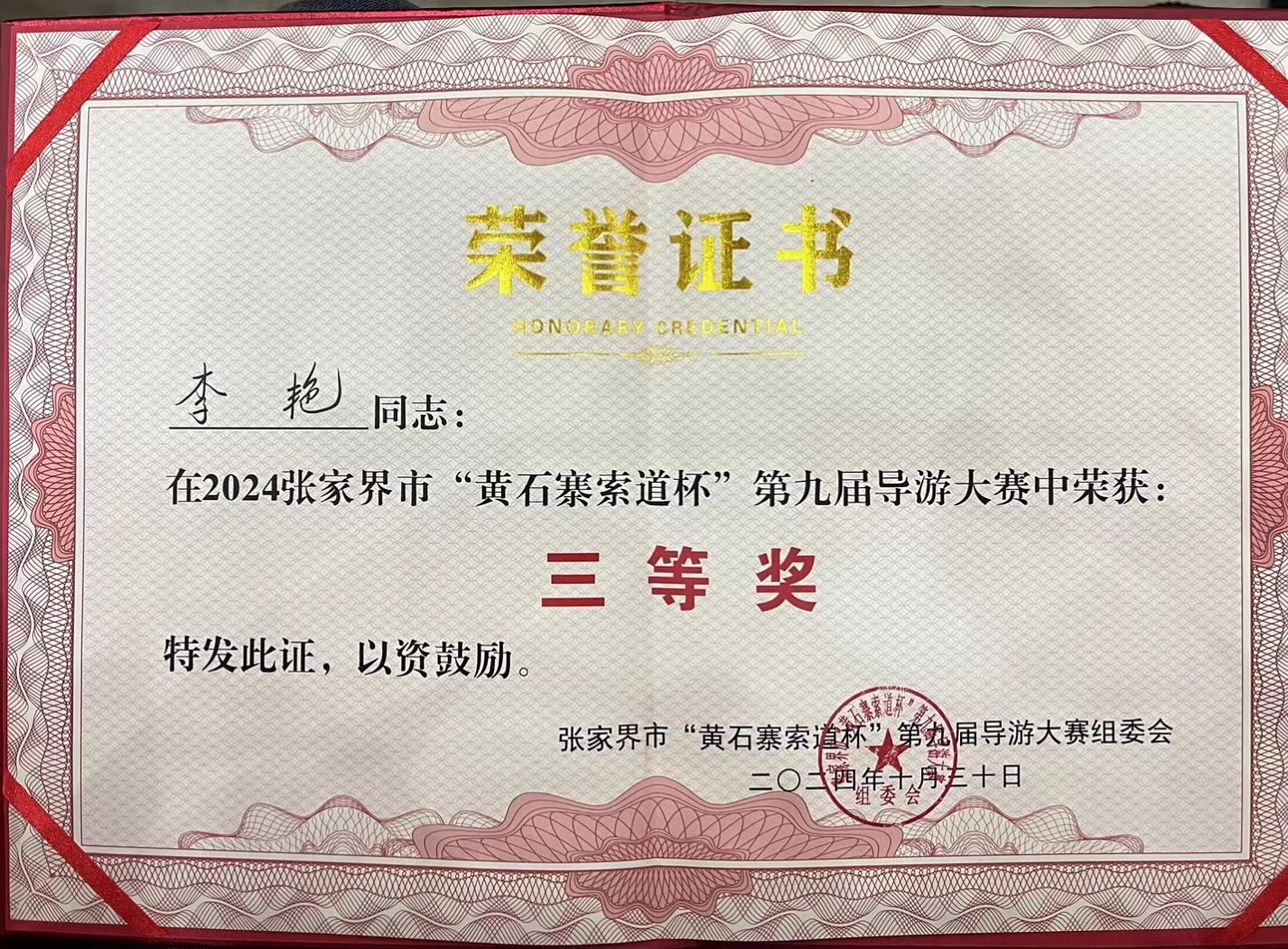 我們很高興地宣布,張家界康輝旅行社在近期舉行的黃石寨導游大賽中取得了優(yōu)異成績,榮獲二等獎和三等獎。