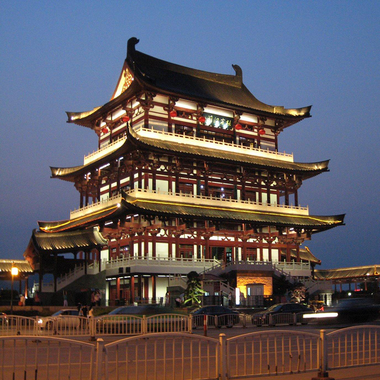 杜甫江閣位于湖南省長沙市河東城區(qū)西湖橋,地處湘江路中段和西湖路交界處,臨湘江而建,是湘江風光帶的一部分。江閣東邊與天心閣、賈誼故居、城南書院(今第一師范)相距僅千米。西邊緊靠湘江、橘子洲,可以遠眺岳麓山。杜甫江閣是湖南最大的仿唐木質結構建筑,具有顯著的園林仿古建筑特色。其園林區(qū)占地面積為11700平方米,建筑面積達到4640平方米。主閣高度為32米,共有7層,展現(xiàn)了宏偉的唐代建筑風格。