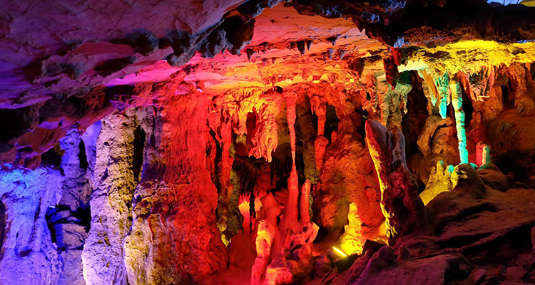 亮點(diǎn):喀斯特溶洞,鐘乳石千姿百態(tài),燈光映襯下如夢(mèng)如幻。