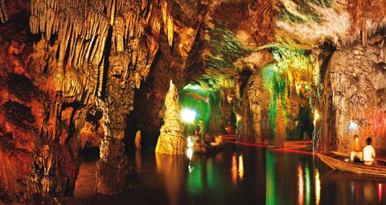 九天洞位于湖南張家界市桑植縣城17公里的利福塔鄉(xiāng),距市區(qū)70公里,距武陵源62公里,因洞內(nèi)有九個自然天窗九天洞而得名,總面積250公頃,是中國目前發(fā)現(xiàn)的溶洞之最,比號稱世界第一的利川溶洞大三倍。九天洞內(nèi)空氣清新,冬暖夏凉。整座洞穴分上、中、下三層,有五層不同高度的螺旋式觀景臺,最下層低于地表面400多米。經(jīng)初步探明洞內(nèi)有40個大廳、3條落差懸殊的陰河、12條瀑布、5座自生橋、10余座洞中山,此外,還有不可勝數(shù)的五光十色的鐘乳石群。在眾多迷人的景觀中尤以九星山、玉宮、水晶宮、九天玄女宮、壽星宮五大奇觀最為著名。 九天洞因有九個天窗與洞頂?shù)孛嫦嗤ǘ妹?/p>