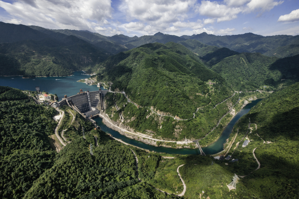 一壩鎖東江,高峽出平湖。東江大壩是我國自行設(shè)計建造的第一座雙曲薄殼型拱壩,壩高157米,壩型美觀、結(jié)構(gòu)新穎、氣勢雄偉,在當時同類型壩中世界排名第二,亞洲排名第一。