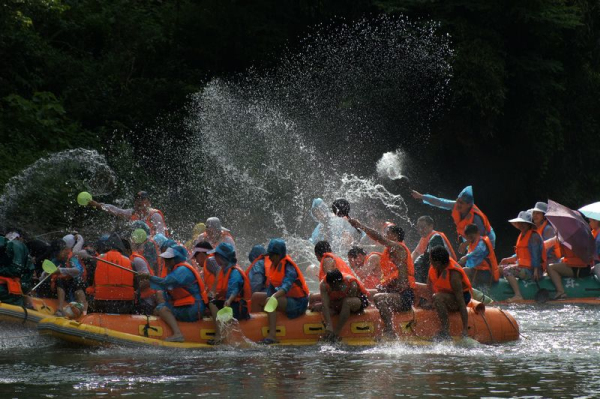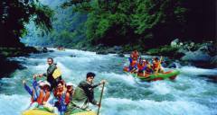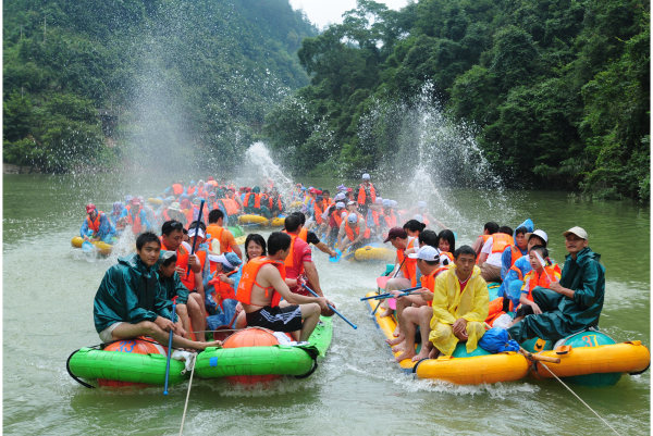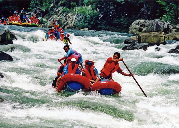 被譽(yù)為“中國生態(tài)第一漂”,位于東江湖最南端的黃草鎮(zhèn)境內(nèi),全程26千米。從龍王廟起漂點(diǎn)到燕子排終漂點(diǎn)整個落差75米,急灘108個,漂流河道兩巖有保存比較完好的原始次森林,奇巖怪石林立,古樹遮天蔽日,老藤攀崖附壁,飛鳥跳躍枝頭。東江漂流以其灘多浪急落差大、水碧石怪魚奇怪、兩岸森林植被佳而 聞名,是國內(nèi)目前最具探險(xiǎn)的融歷險(xiǎn)、探幽、獵奇、拾趣為一體的漂流去處。