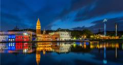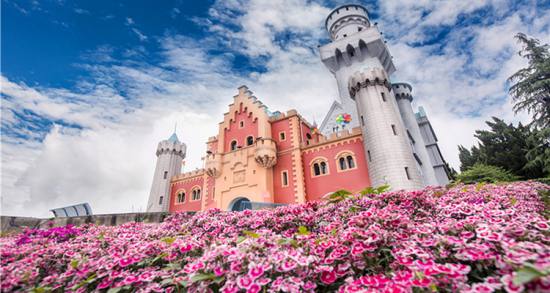 愛情谷,這里可以看到瑞士大鐘塔和歐洲小鎮(zhèn),處處都是典型的歐式建筑。右邊的丹麥國王加冕城堡,是個(gè)明星夢工廠和恐怖城。與它相鄰的那座綠頂紅墻的建筑是荷蘭海牙國際法院,內(nèi)部是一個(gè)世界蝴蝶博覽館,在那里可以免費(fèi)欣賞到各種精美的蝴蝶標(biāo)本。左邊的湖水叫天鵝湖,取名于俄國作曲家柴可夫斯基的同名舞劇《天鵝湖》,湖邊那三座高大的風(fēng)車是荷蘭的象征。右邊地上的泉眼是旱噴泉,在旱噴泉上方的建筑是意大利圣三山教堂,它與原型比例是1:1.5,每年都有許多對新人在這里舉行西式婚禮。這里還有一個(gè)歐洲小鎮(zhèn)仿建的是德國和法國民居,比例為1:1的歐式風(fēng)格,被開放成商場和服裝出租點(diǎn)。